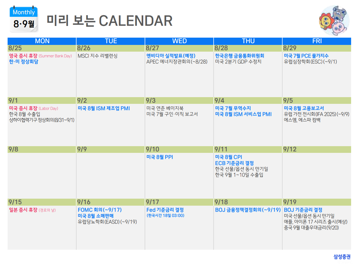 9. 📅 다음 주 주요 일정 (8월 25일~29일)