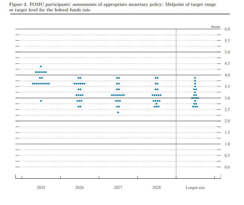 개념: 연준이 기준금리를 0.25%p 인하하며 4.25-4.50%에서 4.00-4.25%로 조정. 시장의 0.5%p 기대와는 차이