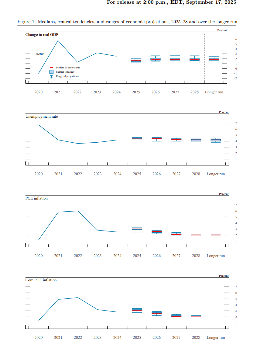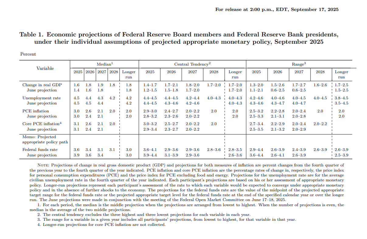 - PCE 물가 전망: 올해 3.0% 유지, 내년 2.6%(+0.2%p) 상향