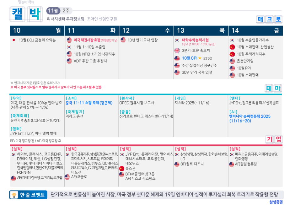 📅 주요 일정 (2025년 11월 11일~11월 15일)