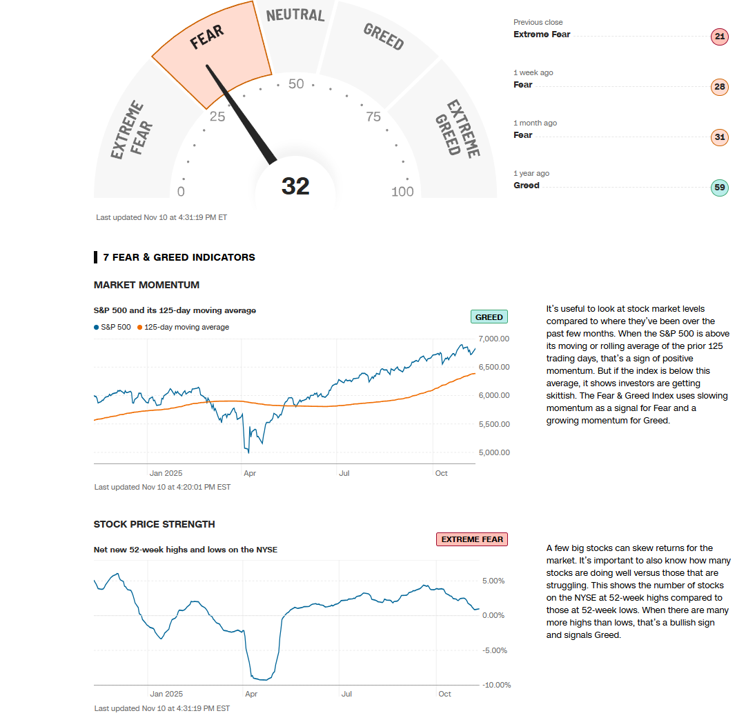 - CNN 심리 - 매도(📉) / 시장 - 하락(📉)