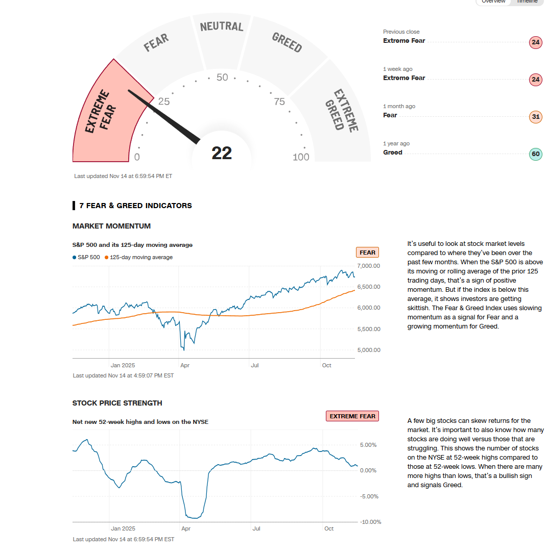 - CNN 심리 - 매수 (📈) / 시장 - 하락 (📉)