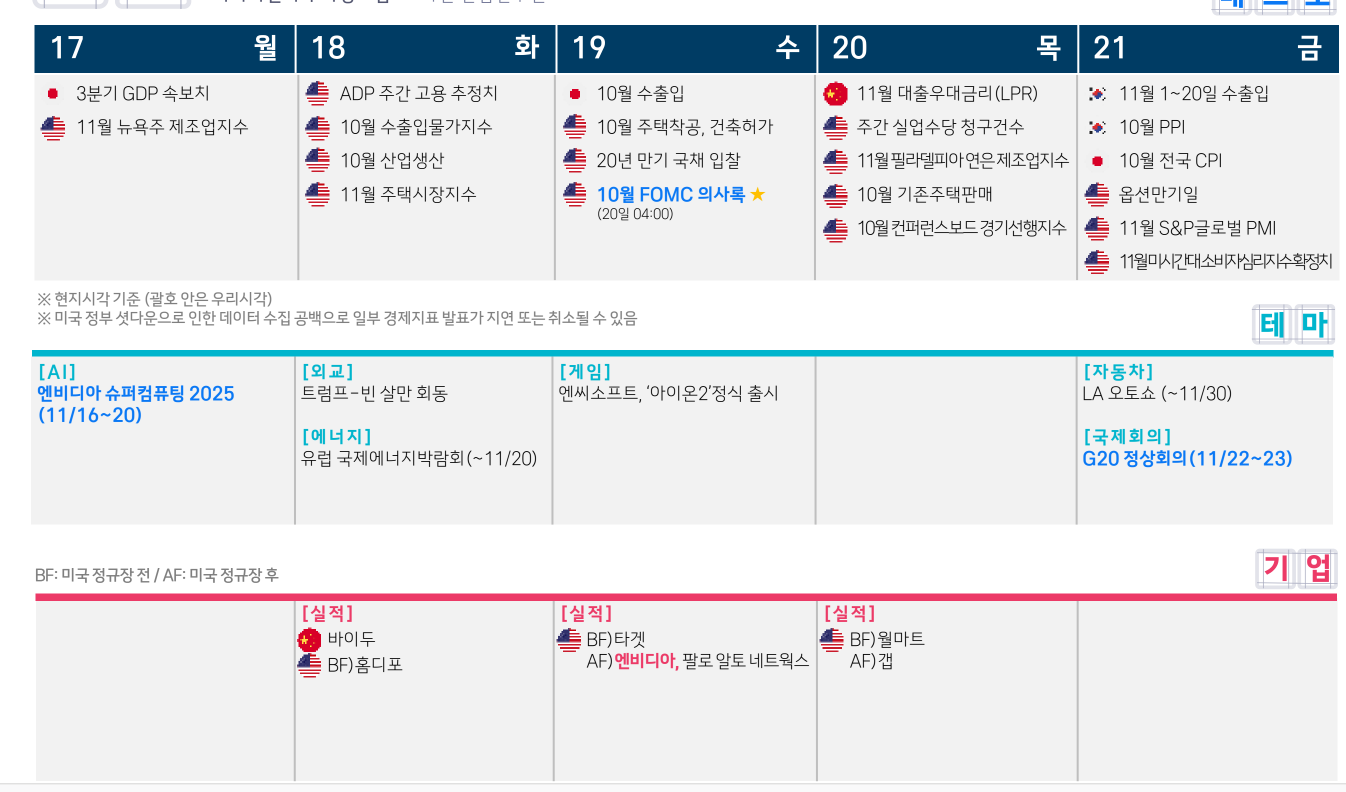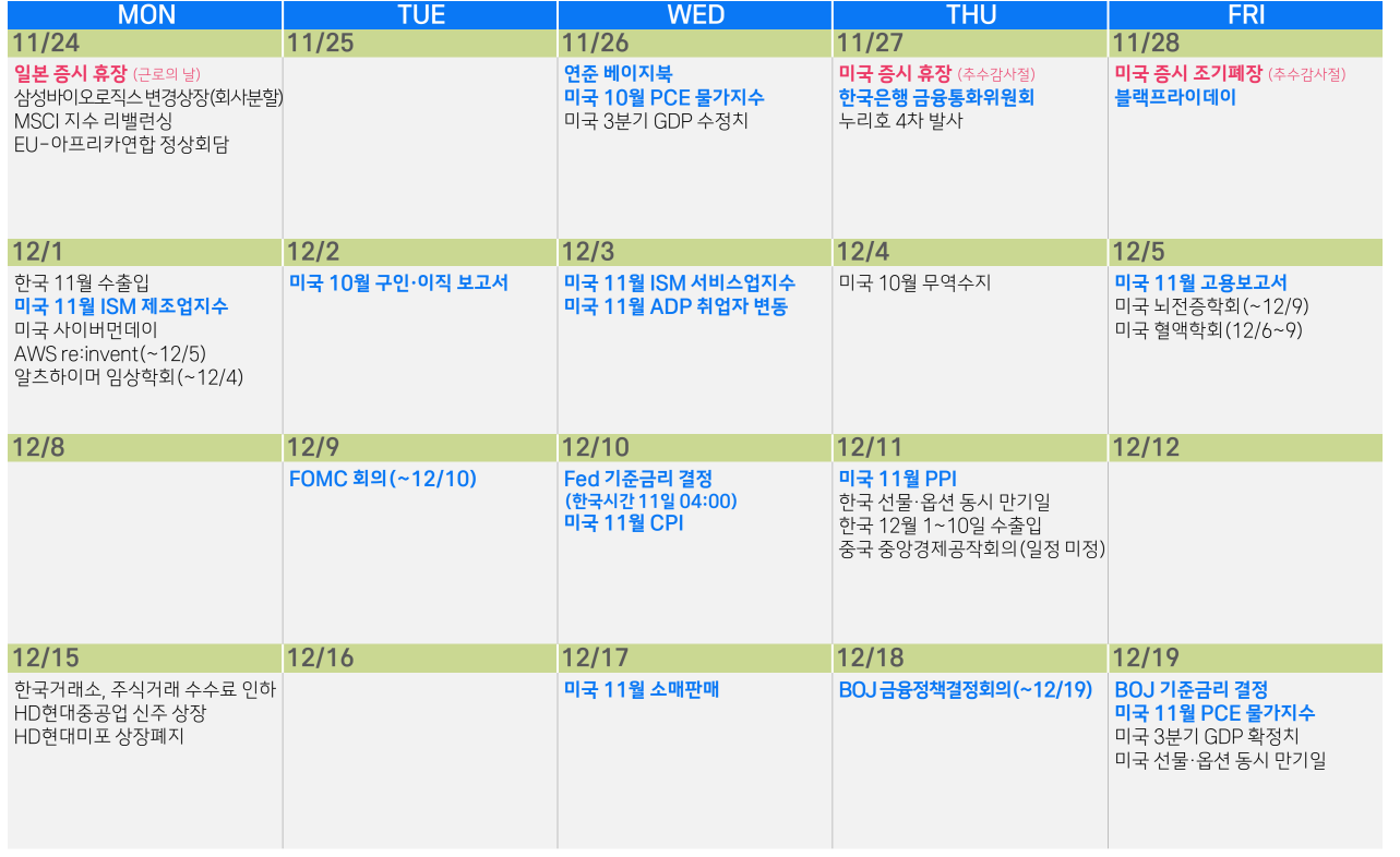📅 주요 일정 (2025년 11월 18일~11월 22일)