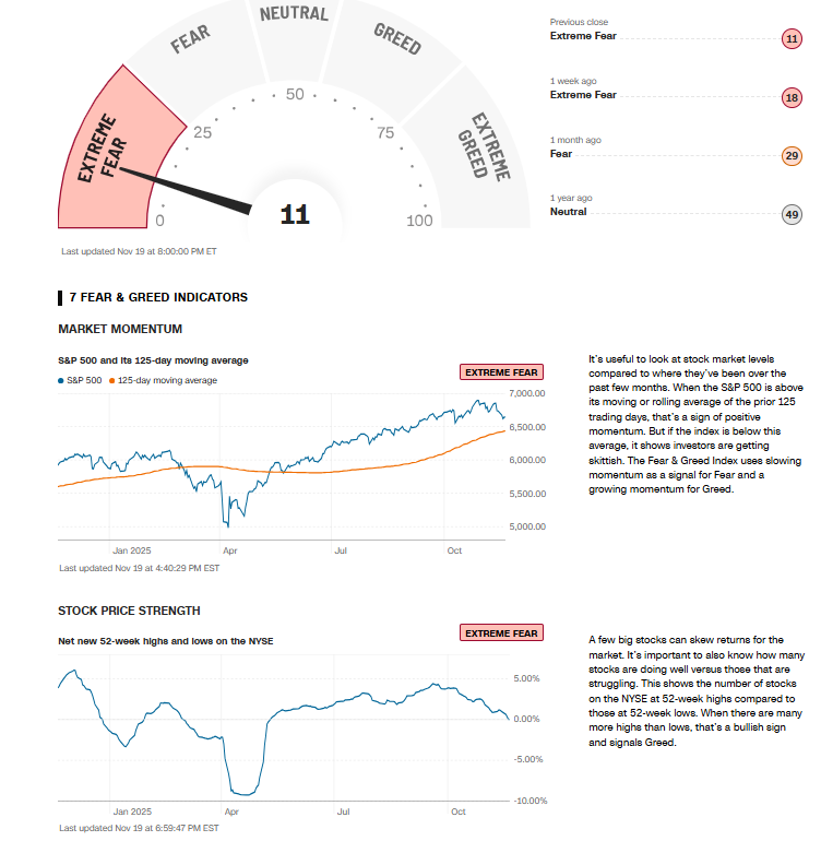 - CNN 심리 - 매수 (📈) / 시장 - 하락 (📉)