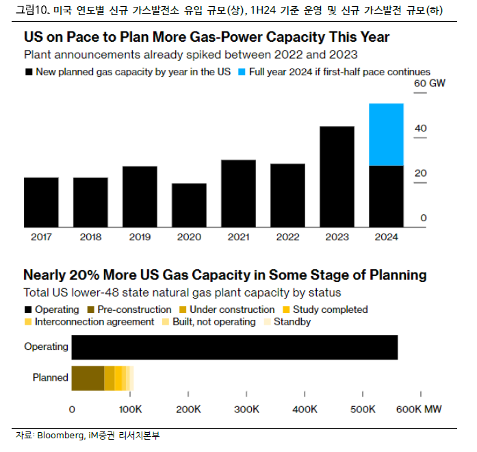 • 미국은 AI 전력수요의 안정적 대응을 위한 핵심적인 수단으로 현재 발전원에서 가장 많은 비중을 차지하고 있고, 매장량도 풍부한 가스발전소에 좀 더 집중할 것으로 예상