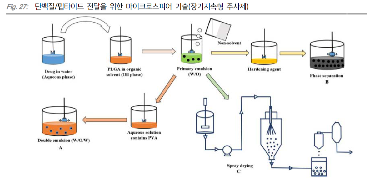 단백질/펩타이드 전달에 사용되는 마이크로스피어 제조 기술에는 크게