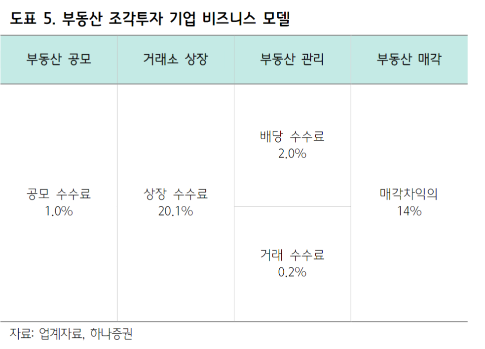 - 이 산업의 비즈니스 모델은 플랫폼을 통한 수수료징구 비즈니스로, 자산 소싱 → 상장 → 배당 → 거래 → 매각 등의 프로세스내에서 수수료가 발생하는 구조로 이뤄져 있음