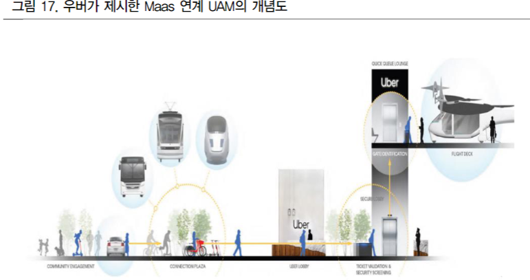 - 차량/철도 등 기타 교통수단과 끊김없이 연계된 통합 교통(Seamless Mobility Service) 구현이 가능하며 UAM 구현에 첨단소재, 모터/인버터/배터리, IoT/AI/빅데이터,센서, 반도체, 5G-6G, 저궤도위성, 항법, 자율비행, 원격제어, 관제, 위성통신 등과 같은 첨단기술이 필요해 새로운 선진국형 산업이 될 것으로 예상