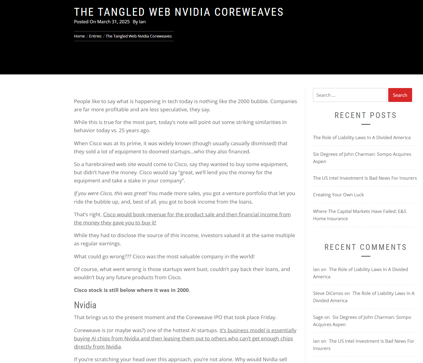 한 투자 블로거가 올린 분석을 보니 2000년 닷컴 버블 때 Cisco가 했던 짓과 똑같더라고요.